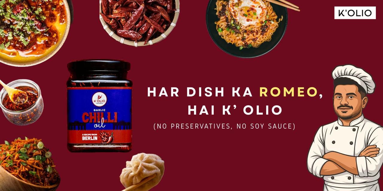 "K'OLIO WITH EVERYTHING" Since the day I have came across this amazing masterpiece, I tend to have it with every possible dish I can. The picture you see might look funny, but its me having this chilli oil with Alu Sev. Trust me it goes best with everything.